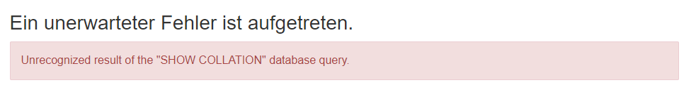 Natürlich weiß ich was eine Collation und Charsets in Verbindung mit einer DB-Server, einer Datenbank oder einer Datenbanktabelle ist. Auch wie man diese richtig setzt etc. Leider habe ich aber keine Idee, was dieser Fehler sagen will und wie man Ihn eventuell behebt.